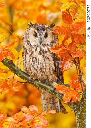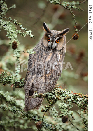 Long-eared owl (Asio otus), looking forward with wide opened eyes