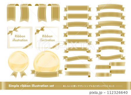 あしらいに使いやすいシンプルで高級感のある金縁ありのゴールドのタイトルリボンフレームのベクター素材
