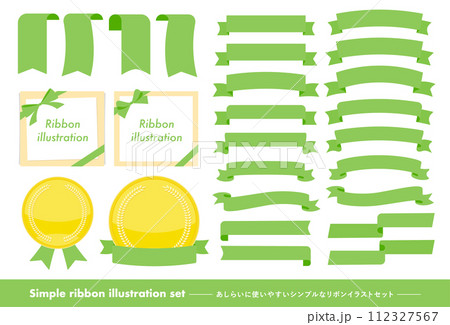 あしらい・タイトルに使いやすいシンプルフラットな春のリボンフレームベクター素材_緑色・グリーン