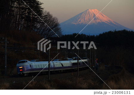 うっすら雪の積もった八ヶ岳とE257系・特急あずさ