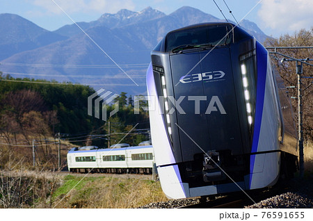 冬の八ヶ岳とE351系・特急スーパーあずさ