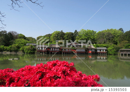 京都 長岡天満宮 銀水亭と満開の霧島つつじ