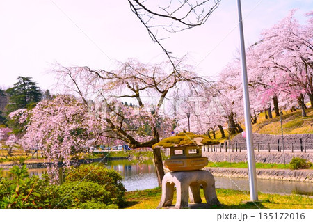 新潟県長岡市悠久山公園枝垂れ桜風景