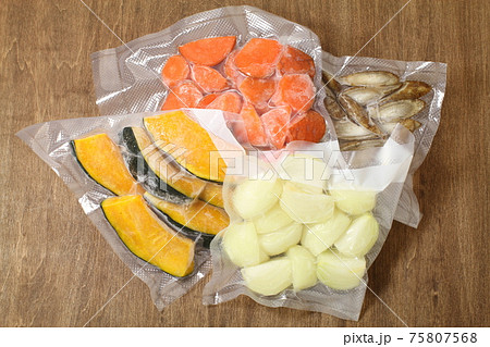 野菜、カボチャの保存、真空パック、生野菜の冷凍保存
