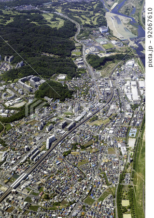 南武線の稲城長沼駅上空から南多摩駅方向を空撮