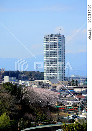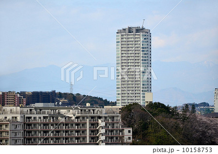 日本の横浜都市景観 長津田駅前のタワーマンションなどを望む