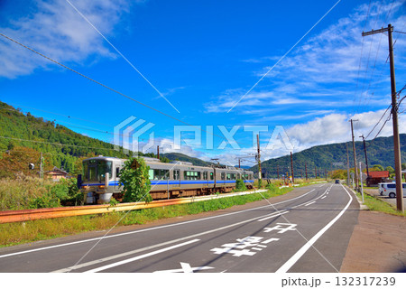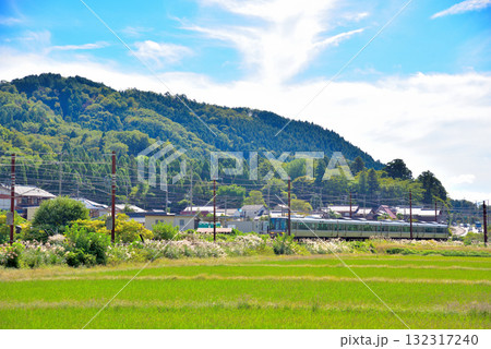 余呉町の田園地帯を走る新快速電車 滋賀県長浜市