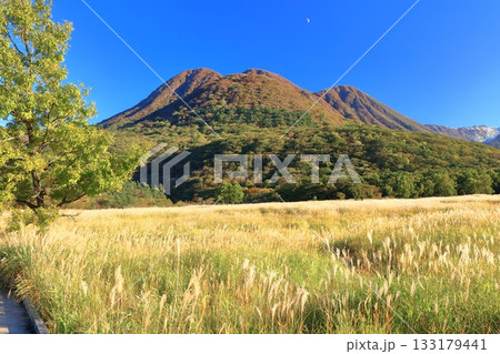 秋のくじゅう長者原風景 長者原ビジターセンター 阿蘇くじゅう国立公園 大分県九重町長者原