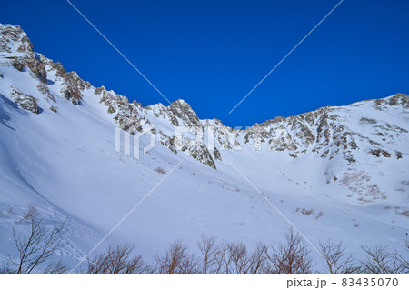 長野県駒ヶ根市の冬の千畳敷カールを千畳敷駅付近から眺める