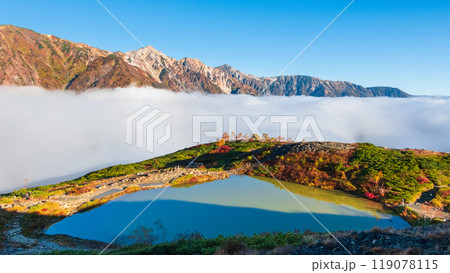 秋の長野県小谷村 紅葉の栂池高原 ゴンドラリフトからの眺望