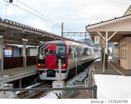 長野電鉄の地下駅ホームに停車する特急ゆけむり号 2015.01 長野県