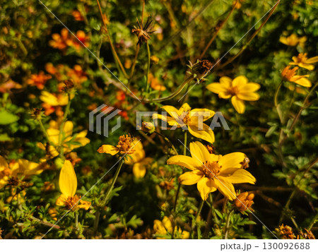 Yellow flowers blooming in the garden under the sunlight wallpaper
