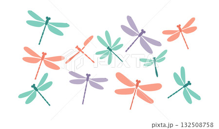 Colorful dragonflies flying in natural environment vector illustration soft pastel tones