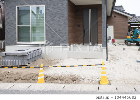 新築イメージ 外構工事の建築材料 複数のコンクリートブロック