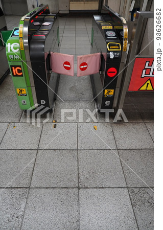 エラー・停止・ストップ・残高不足でフラップドアが出て閉まっている改札