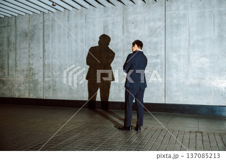 スーツ姿の影と対峙