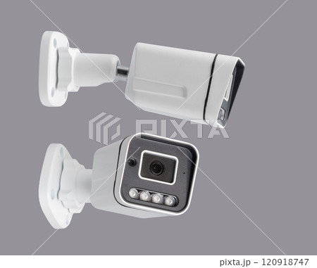 surveillance security camera isolated on gray background in different projections