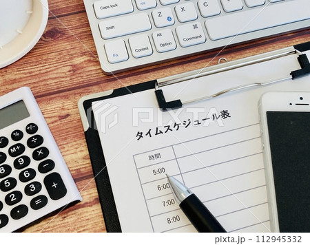 説明会と書かれたブロック、電卓、スマホ、ノート