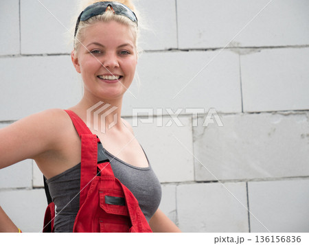 Female builder working build new house