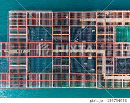 View of a large wooden structure built over water with open spaces during daylight hours in a coastal area