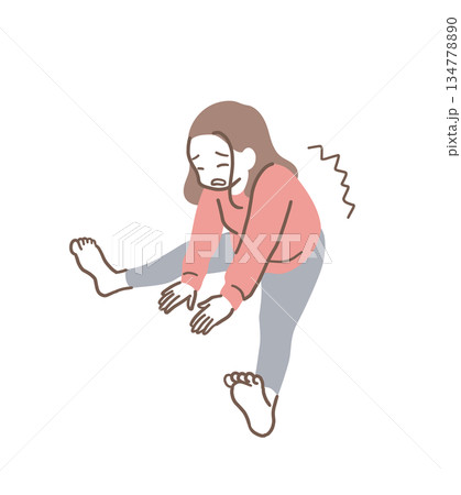体が硬くて開脚前屈に苦戦する女性のイラスト