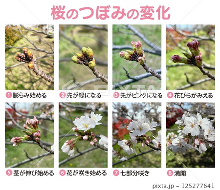 桜のつぼみ_開花までの経過観察写真_つぼみの変化8段階_文字入り