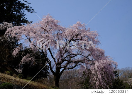 春の日差しを浴びる枝垂れ桜 【相模原市津久井 4月】