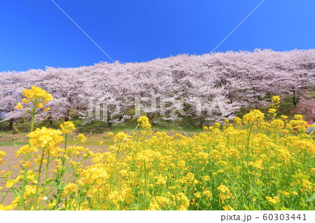 【長野県】晴天の弘法山古墳の桜と菜の花畑
