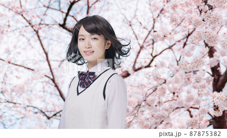 桜と女子学生 高校生 受験生