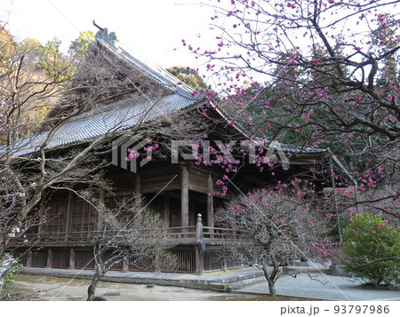 梅が咲く鎌倉市の妙本寺(祖師堂)