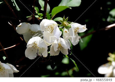 三鷹中原に咲く白い6枚花弁のバイカウツギの花