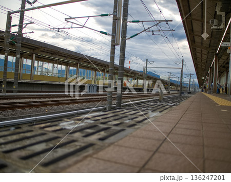 駅のホームから見た線路