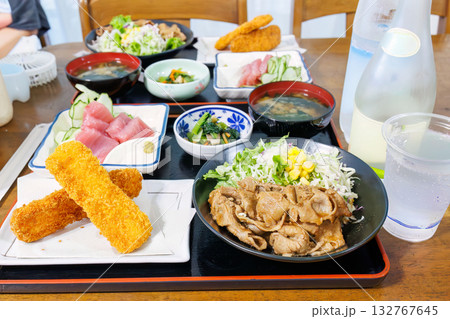港の民宿の美味しい晩御飯。座間味島座間味港 沖縄県島尻郡慶良間諸島-2025 沖縄本島から40km西