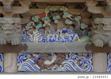 信州 伊那の神社 熱田神社 腰組の獅子と唐子遊びの彫刻(8/9) 国重要文化財の本殿