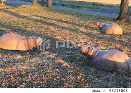 関宿にこにこ水辺公園のカバのブロンズ像