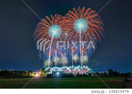 《千葉県》利根川花火大会と関宿城・千葉県野田市側から撮影