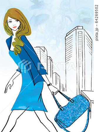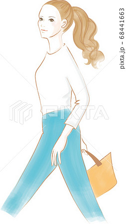 爽やかに闊歩する女性水彩風ベクターイラスト