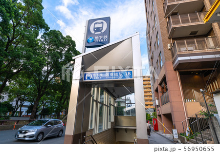 日本の横浜都市景観 地下鉄 阪東橋駅(出入口)を望む