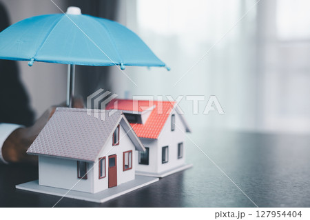 Concept business house finance protection office plan investment buy sell home ensuring idea financial security. residence agent hand protect purchase insurance and secure favorable loan deal.