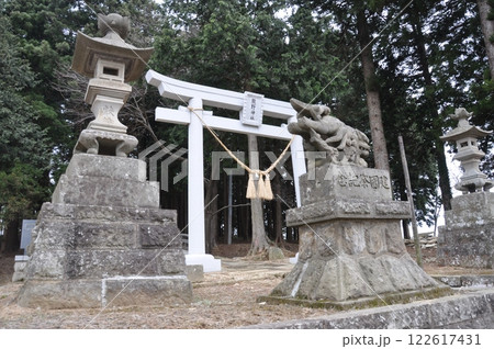 奥州街道 笠石宿 熊野神社 鳥居 狛犬 灯籠