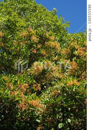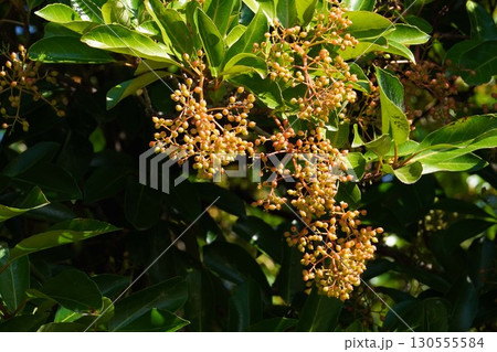 樹いっぱいに蕾を付けたサンゴジュ