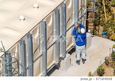 受水槽 貯水槽工事 FRPパネル水槽 組立