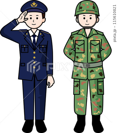 自衛隊 敬礼をする男性と女性自衛官のイラスト