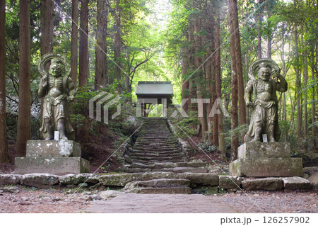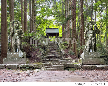 Stone Nio Guardians statues to Futagoji Temple entrance, Kunisaki
