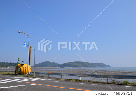 フルーツバス停 阿弥陀﨑バス停 左は有明海諫早湾 長崎県諫早市小長井町