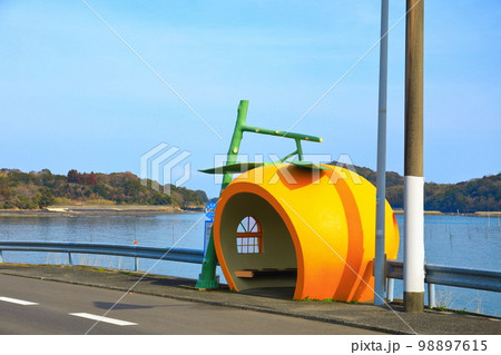 諫早駅方面行きの阿弥陀崎バス停はみかんの待合室 長崎県諫早市小長井町遠竹