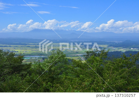 宮城県 阿武隈山地 四方山から西方の角田市と蔵王山系を見渡す