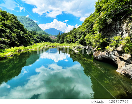 晴れた夏の樹木の緑が美しい塔のへつりの風景5