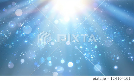 キラキラと降りそそぐ水色の光と玉ボケの背景