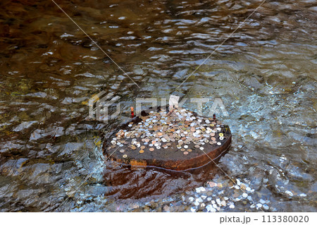 白糸の滝 水面のお賽銭台 長野県軽井沢 北軽井沢